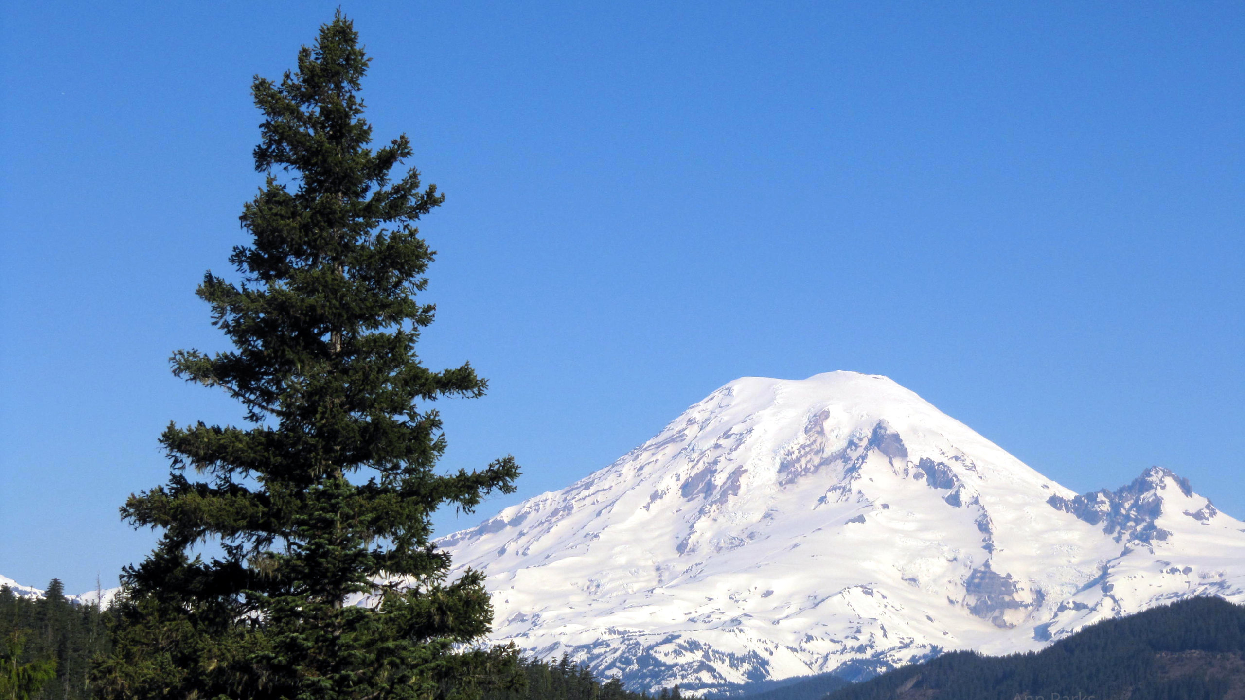 Credit & Copyright: Ann Parks from Kendrick, Idaho Mount Rainier:The glacier topped peak of Mount Rainier stretches far above the evergreen forest below.