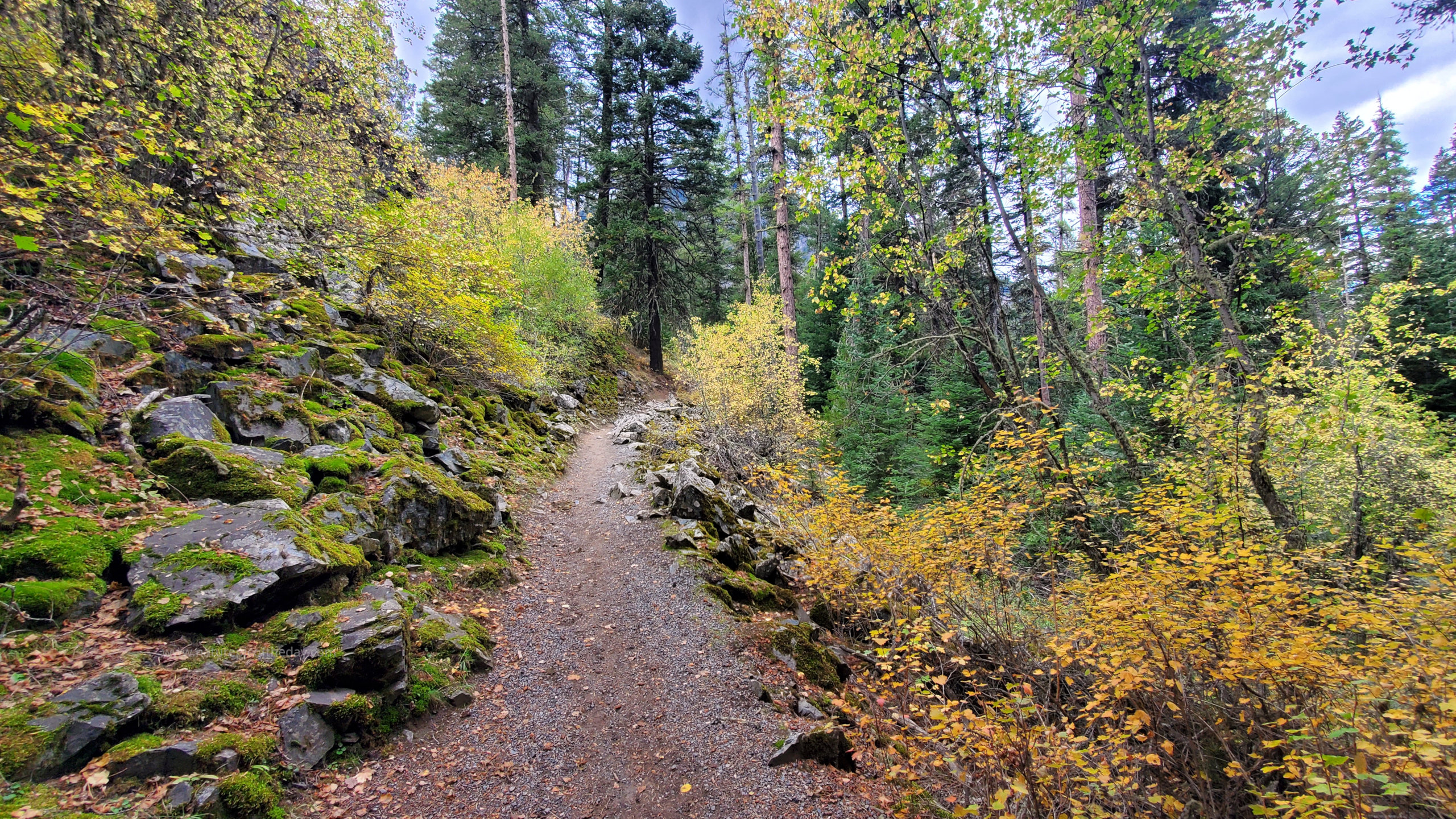 Fall colors delight hikers while a crisp bight to the air keeps them cool.