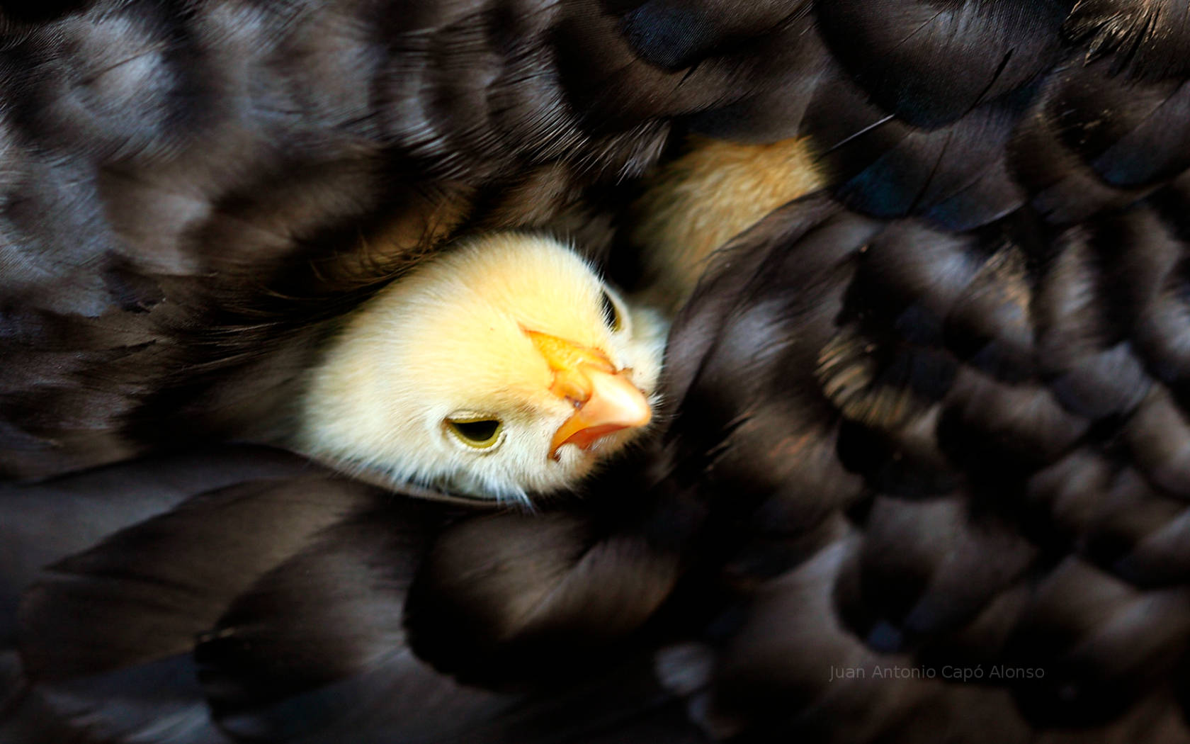 Credit & Copyright: Juan Antonio Capo Alonso from Mallorca, Illes Balears, Spain Maternity:This little chick is peeking out at the bright new world from the folds of her mother's protective wing. Is she going to venture forth from the nest, or tuck back into Mom's cozy, warm familiarity?
