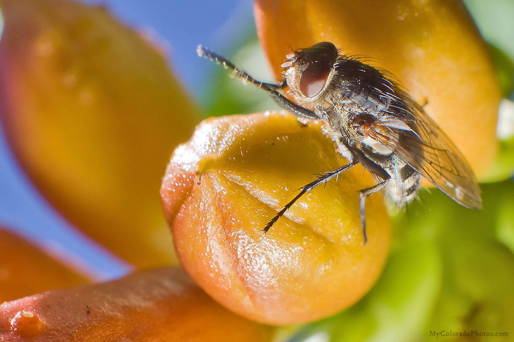 Credit & Copyright: Jerry Musgrove from Denver, CO Close Up Fly:This really is a close-up of a fly. Notice all the veins in the wings and hair on it's body. Typically you don't look close enough to see this detail after the fly swatter is done.