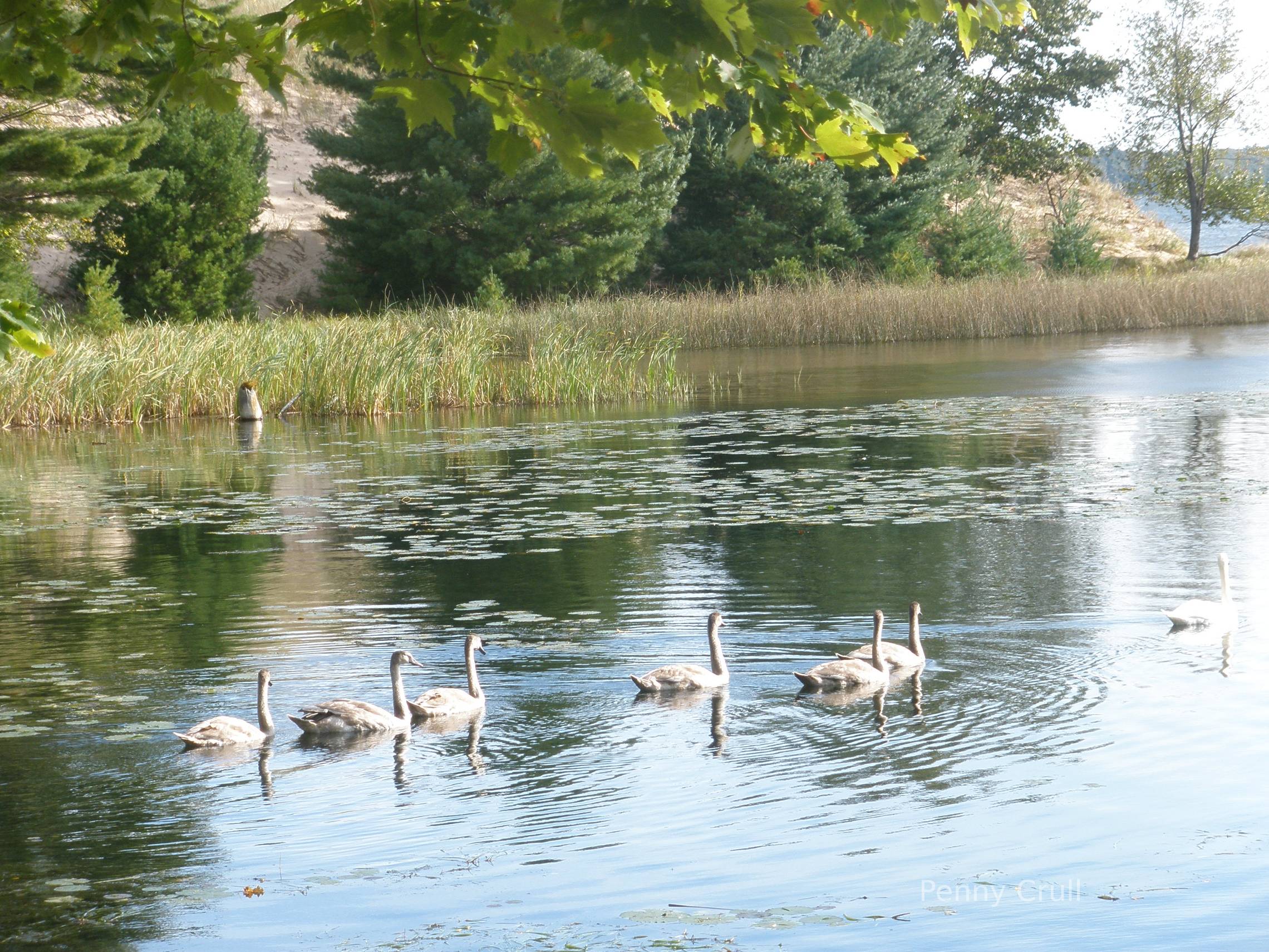 Credit & Copyright: Penny Crull from Pagosa Springs, CO Follow Me!:"As I approached this pond a mother trumpeter swan started swimming away and her six juveniles followed. Not a sound was made by the mother."