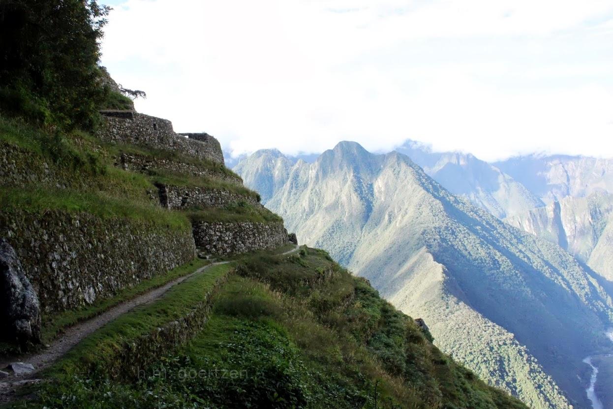 Credit & Copyright: h.m. goertzen from Portland, Oregon Inca Terraces and the Andes:Razor backed ridges of the Peruvian Andes disappear up into the clouds on the horizon and the trail ahead curves out of sight, leading to points unknown. It is sure to have more fantastic views!