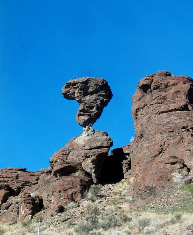 Credit & Copyright: NPOD Balanced Rock:Precariously perched in the sage brush deserts of southern Idaho, Balanced Rock still stands, resisting the forces of nature, albeit with a little help.