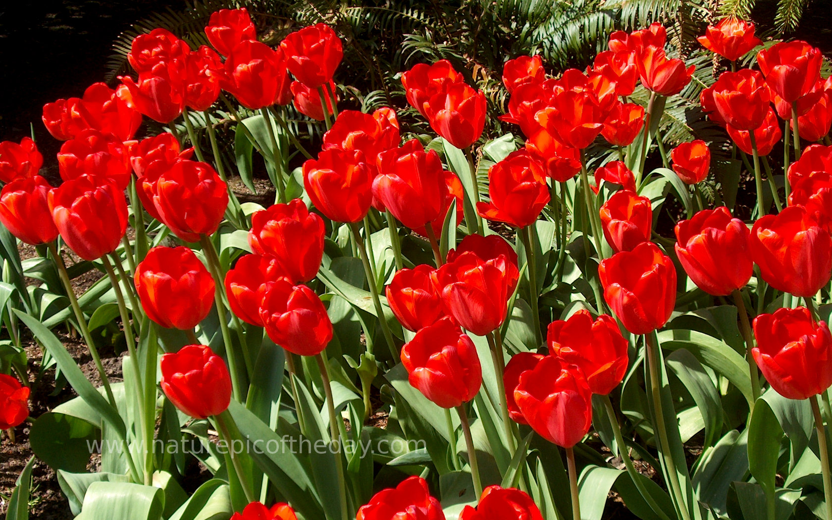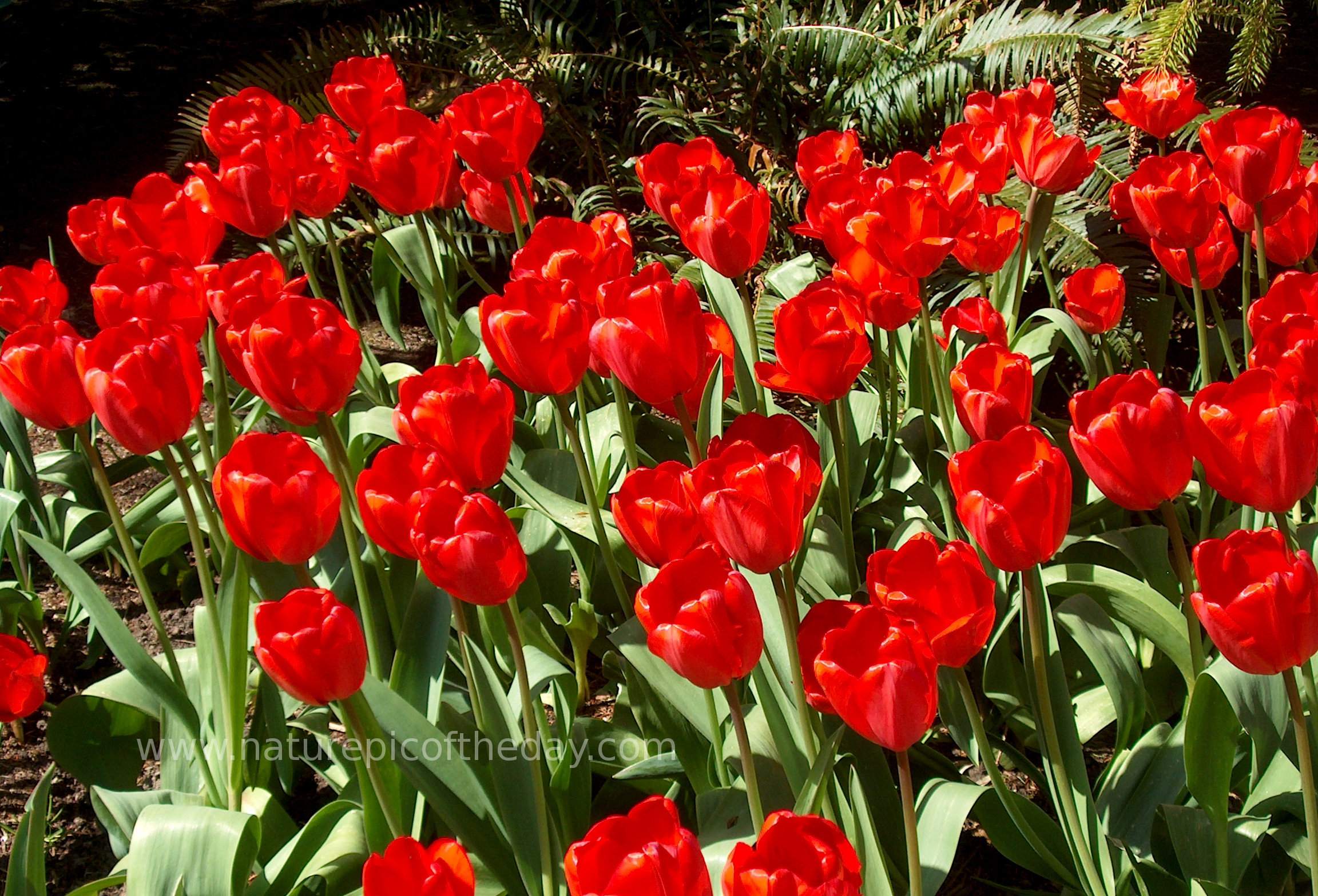 Credit & Copyright: Rachel from NPOD Red Impression:A beautiful patch of Red Impression Tulips brighten the day of visitors to Washington's Skagit Valley.