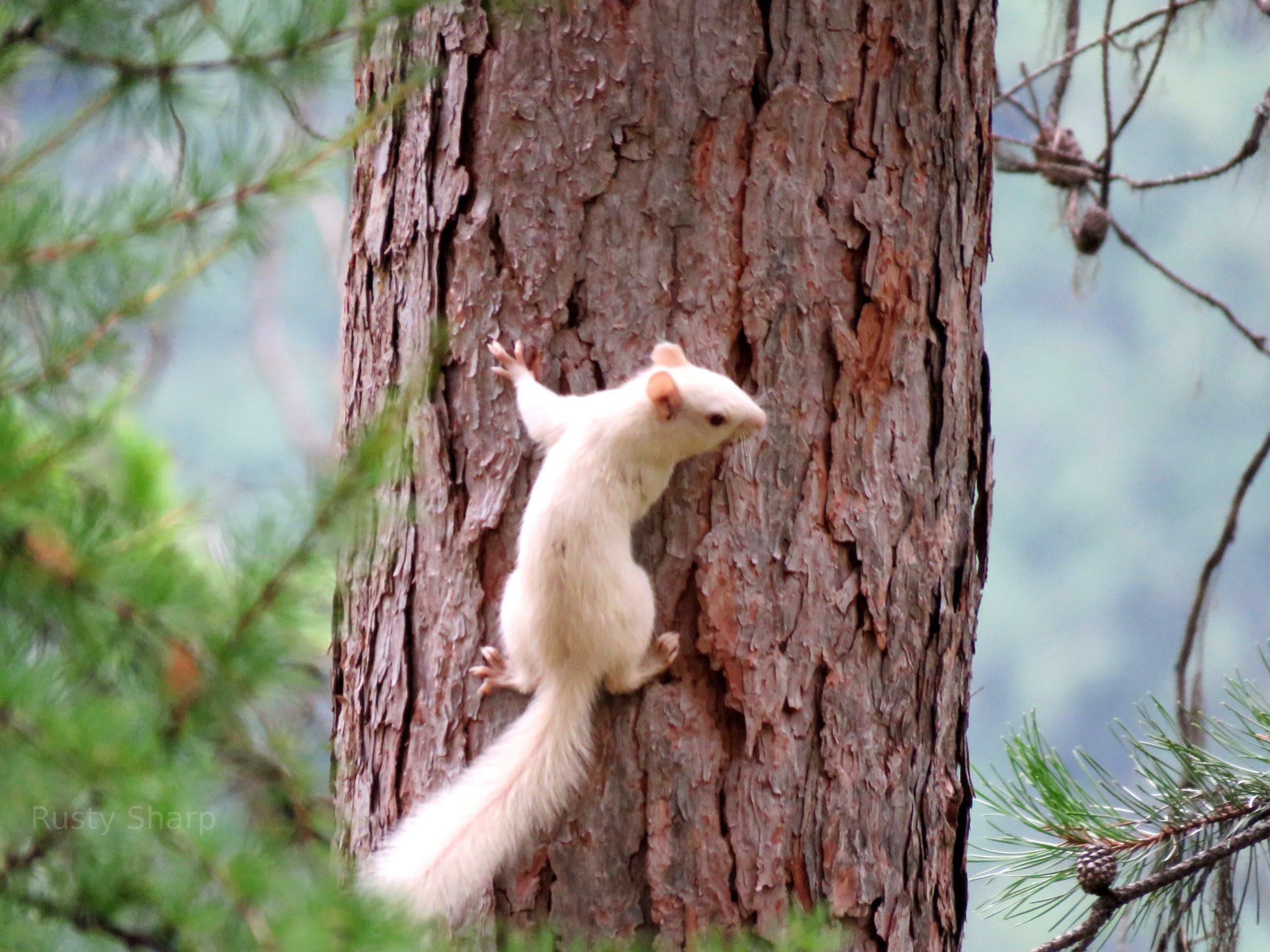 Thanks for confirming the eye colour. Reading up on this and I quote "If an animal's eyes are any color other than pinkish-red or pale blue, it is not albino" So I guess it's simply a white squirrel.