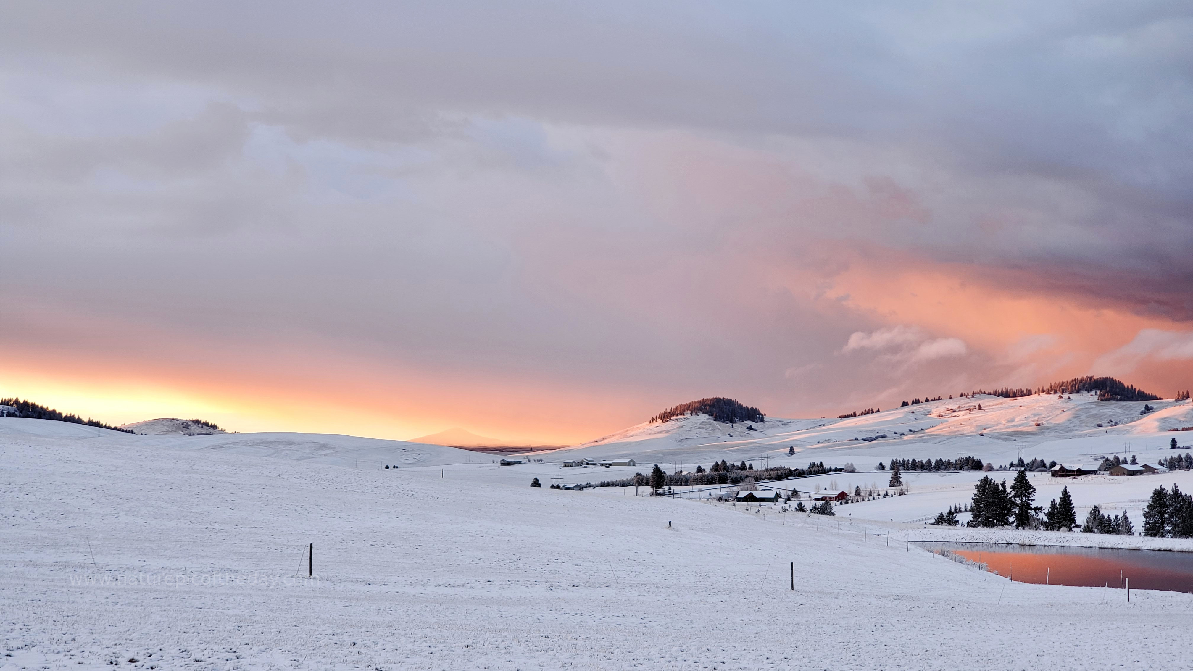 Scattered snow storms roll through The Palouse, partially clearing up in time for a beautiful sunset!