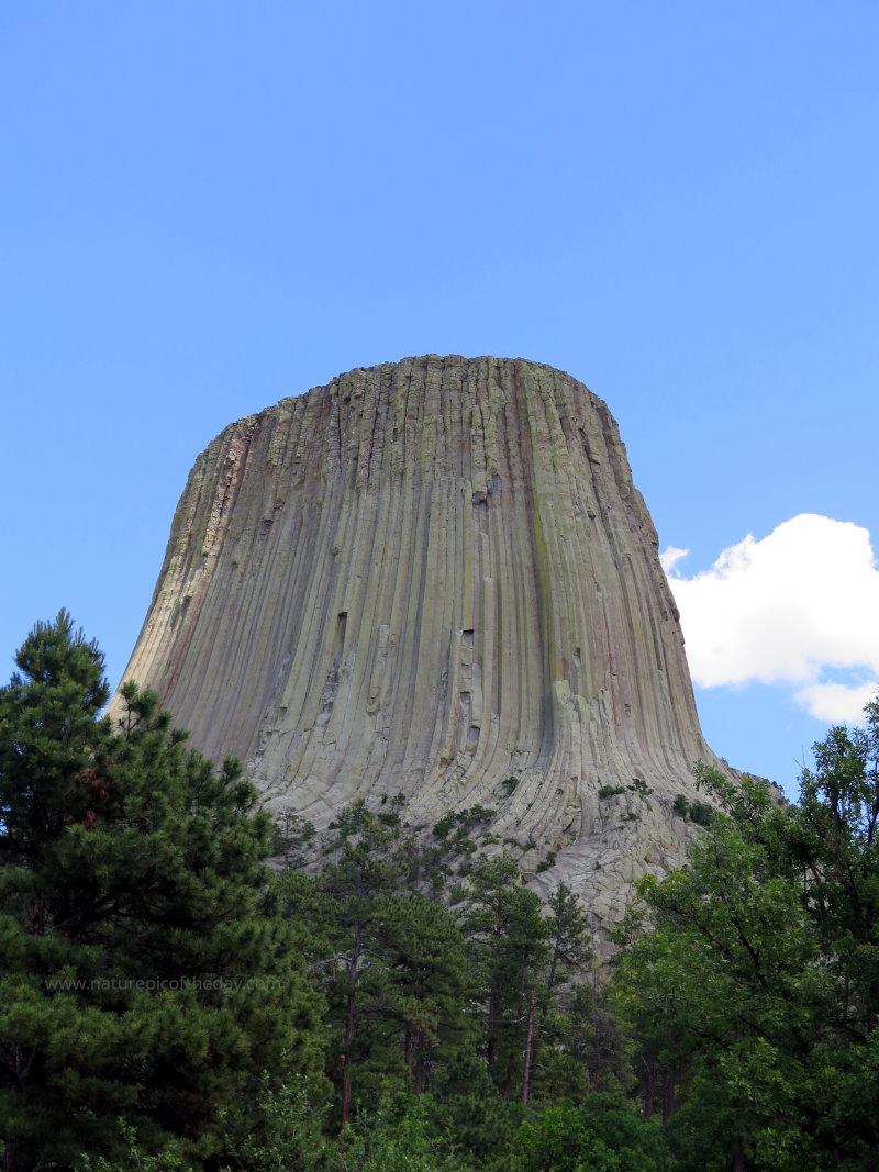 Sunlight plays off the hexagonal columns of Devils Tower in Wyoming.