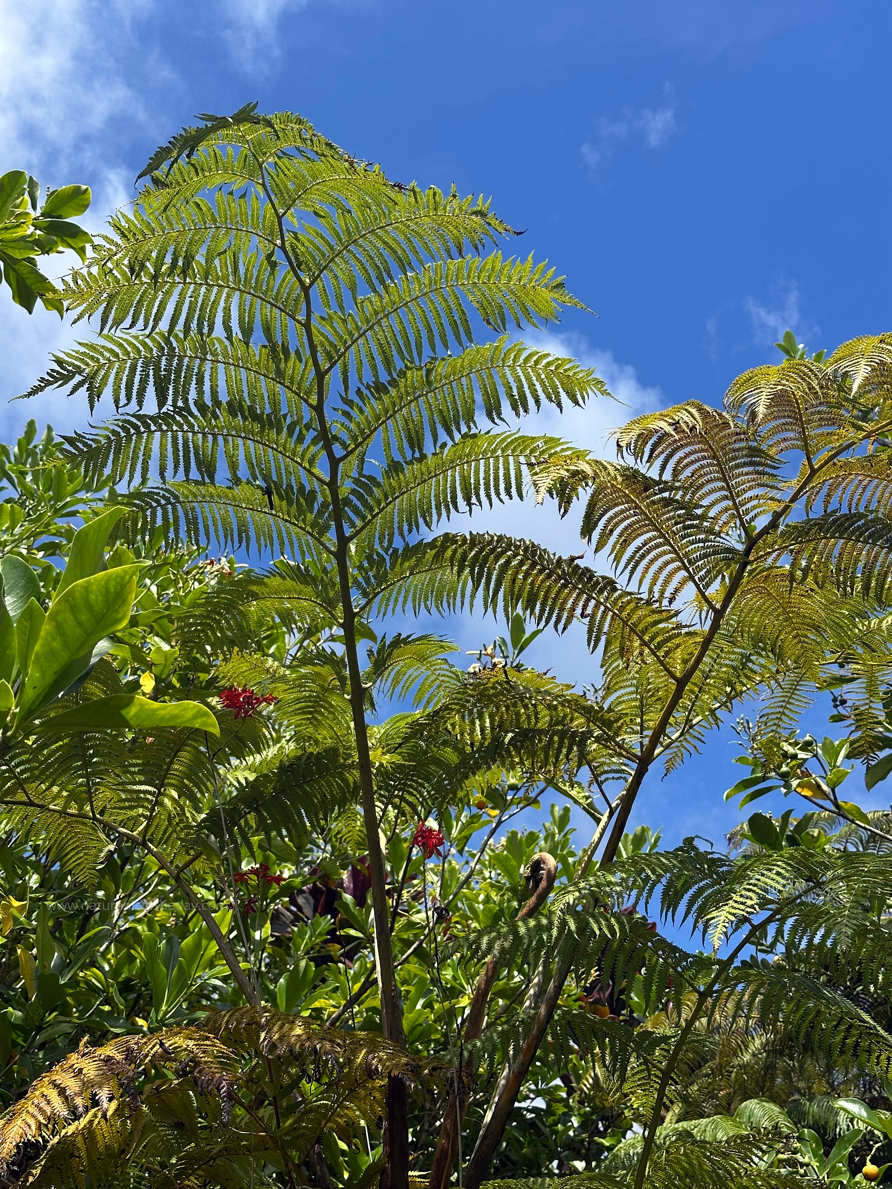 Giant ferns tower over visitors to the tropical Big Island of Hawaii.