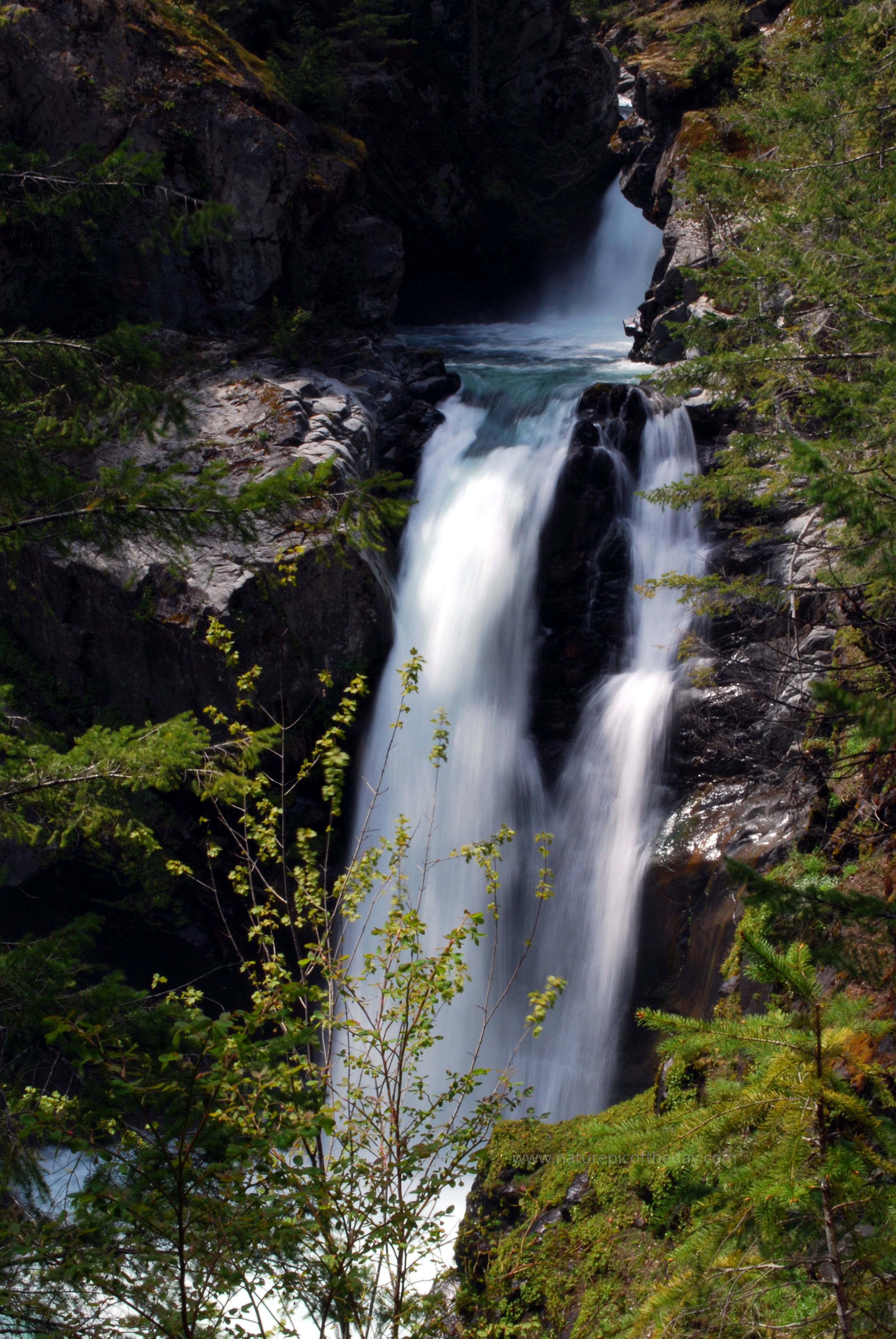 A beautiful falls tumbles through the rugged terrain of the Olympic Peninsula in the state of Washington.